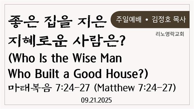2025-09-21 주일예배_좋은 집을 지은 지혜로운 사람은? (마태복음 7:24-27)