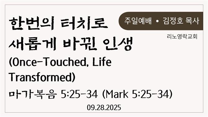 2025-09-28 주일예배_한번의 터치로 새롭게 바뀐 인생 (마가복음 5:25-34)