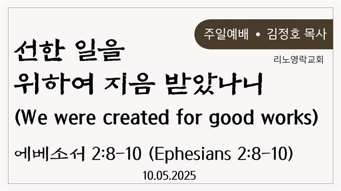 2025-10-05 주일예배_선한 일을 위하여 지음 받았나니 (에베소서 2:8-10)